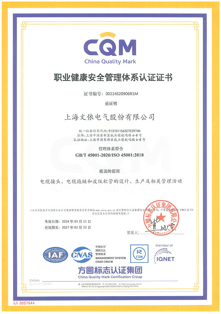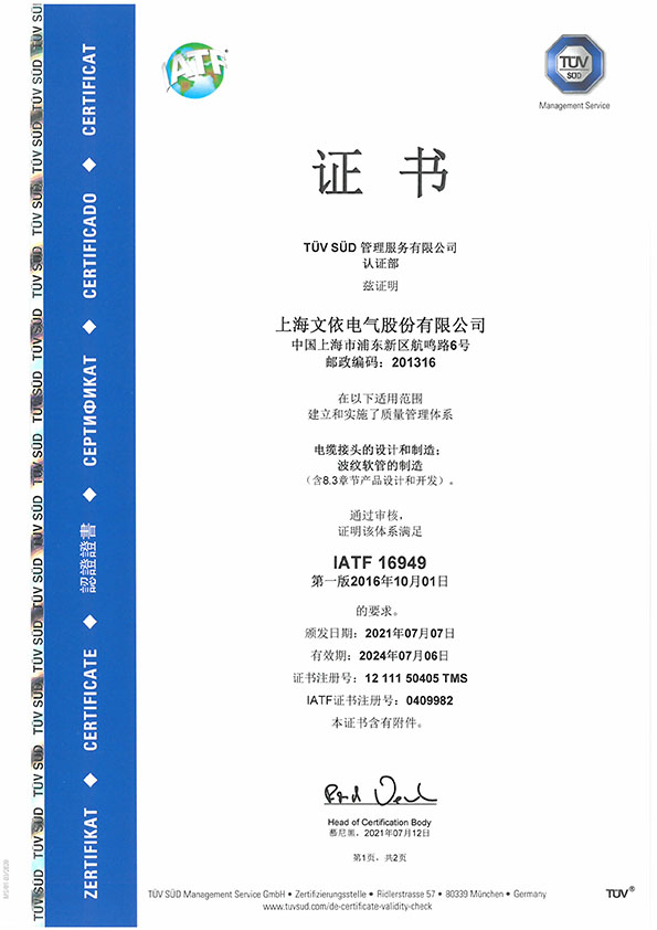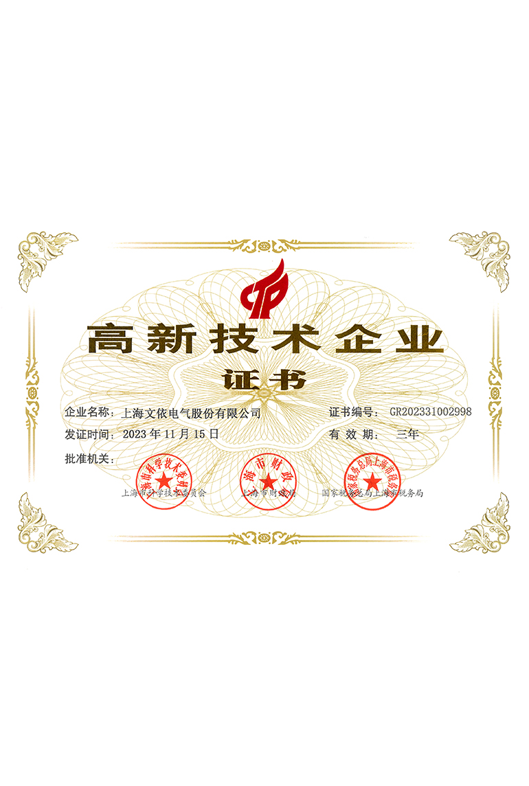 文依電氣貫徹落實規范化、標準化、精細化的管理方針,通過了TUV頒發的ISO9001:2015、IATF16949:2016質量管理體系認證和IEC80079-34防爆質量管理體系、ISO14001環境管理體系認證及ISO45001職業健康安全認證。多年以來被評為“上海市文明單位”、“上海市科技小巨人企業”、“上海市高新技術企業”、上海市“專精特新”企業、“上海市浦東新區研發機構”、“上海市浦東新區安全生產示范企業”、“上海市浦東新區質量標桿企業”、“上海市浦東新區消防安全先進集體”、“上海市浦東新區商業秘密保護創新試點單位”以及浦東新區航頭鎮“明星企業”等榮譽稱號,公司產品于2024年12月通過了“上海品牌”認證,并連續多年被上海市工商局評為“守合同、重信用”AAA級單位。